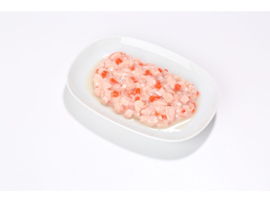 Složení: Kuřecí maso 40%, vývar 38%, mrkev 10%, rýže 8%, škrob 4%.