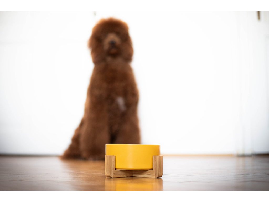 Aminela keramická miska v dřevěném stojanu - žlutá 750ml