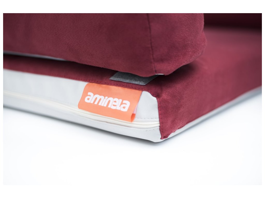 Matrace Aminela se skládá z dvou odolných materiálů, z voděnepropustného materiálu a měkkého, hebkého, avšak pevného a voděodpudivého materiálu, který nešustí a pro psa je velmi pohodlný. Ze stejně hebkého a pohodlného materiálu je vyroben okraj, který se na matraci přichytí pomocí suchých zipů. Kdykoliv se dá okraj odlepit a zase nalepit.