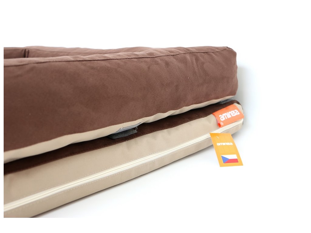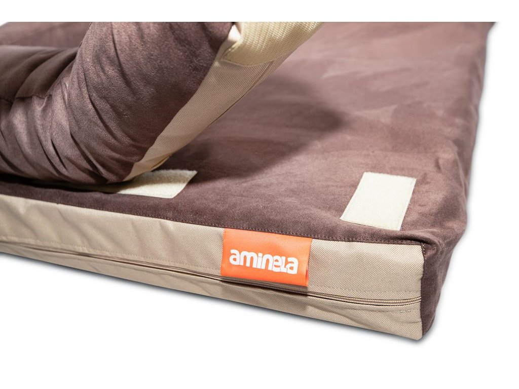 Matrace Aminela se skládá z dvou odolných materiálů, z voděnepropustného materiálu a měkkého, hebkého, avšak pevného a voděodpudivého materiálu, který nešustí a pro psa je velmi pohodlný. Ze stejně hebkého a pohodlného materiálu je vyroben okraj, který se na matraci přichytí pomocí suchých zipů. Kdykoliv se dá okraj odlepit a zase nalepit.