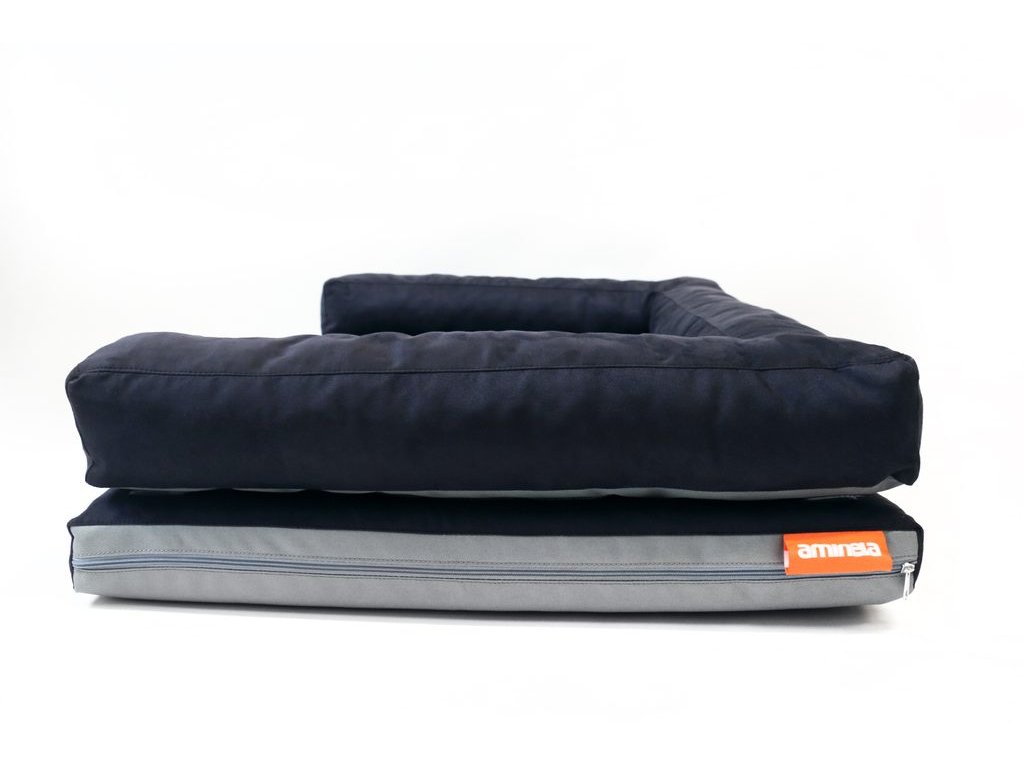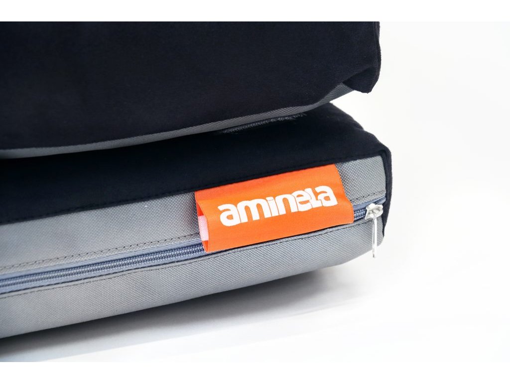 Matrace Aminela se skládá z dvou odolných materiálů, z voděnepropustného materiálu a měkkého, hebkého, avšak pevného a voděodpudivého materiálu, který nešustí a pro psa je velmi pohodlný. Ze stejně hebkého a pohodlného materiálu je vyroben okraj, který se na matraci přichytí pomocí suchých zipů. Kdykoliv se dá okraj odlepit a zase nalepit.