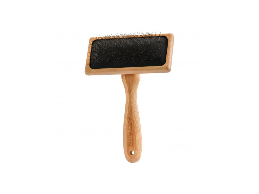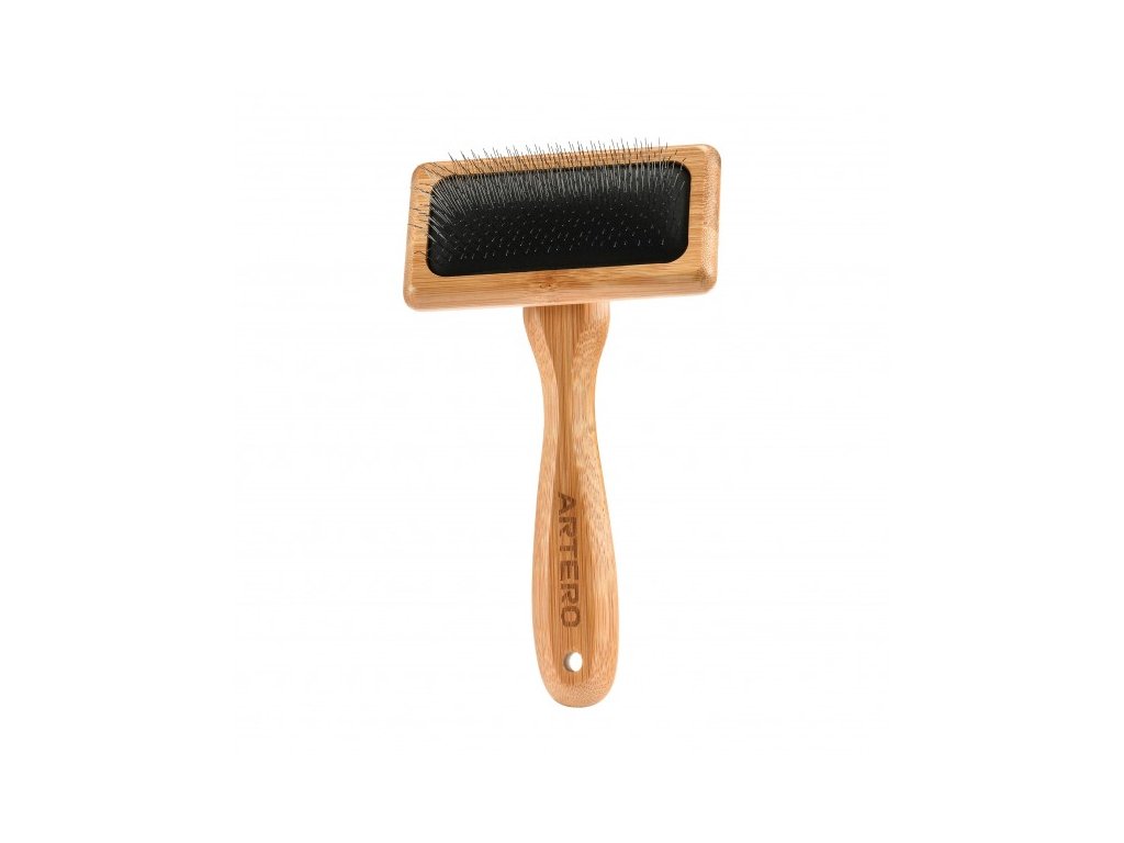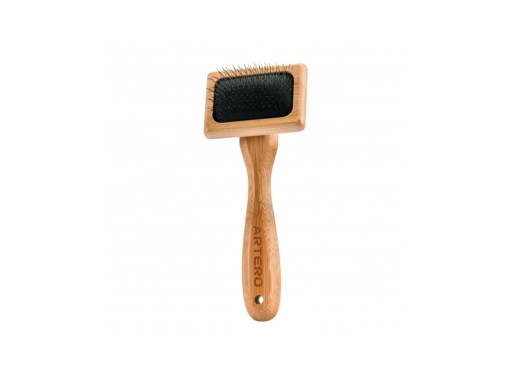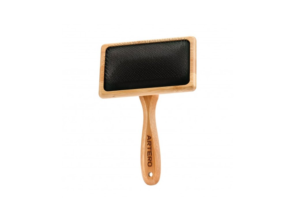Bambusový kartáč Nature Collection Artero je nepostradatelnou pomůckou. Vhodnou pro udržování srsti bez plstí a cucků. Díky adaptabilním hrotům odděluje pramínky srsti, aniž by poškozoval kůži mazlíčka.