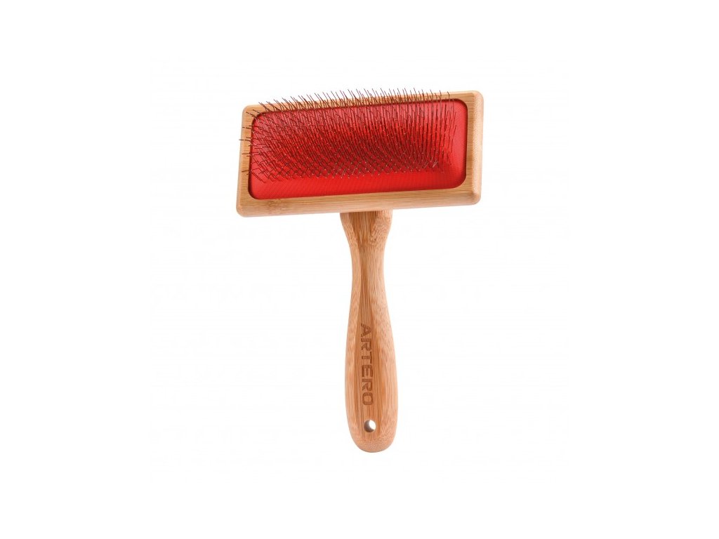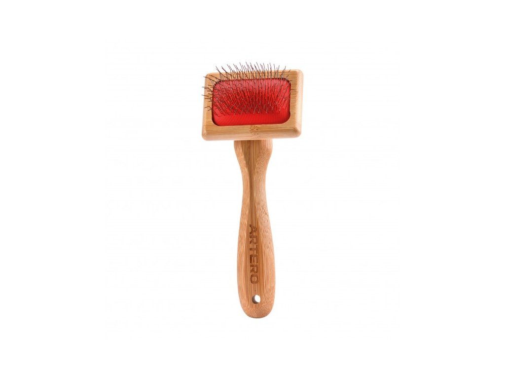 Bambusový kartáč Nature Collection Artero je nepostradatelnou pomůckou. Vhodnou pro udržování srsti bez plstí a cucků. Díky adaptabilním hrotům odděluje pramínky srsti, aniž by poškozoval kůži mazlíčka.