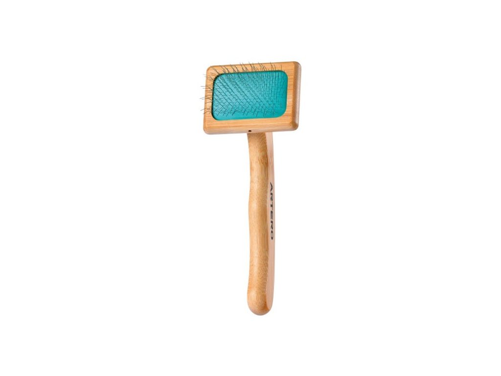 Bambusový kartáč Nature Collection Artero je nepostradatelnou pomůckou. Vhodnou pro udržování srsti bez plstí a cucků. Díky adaptabilním hrotům odděluje pramínky srsti, aniž by poškozoval kůži mazlíčka.