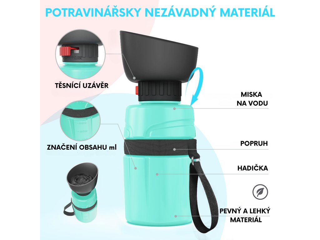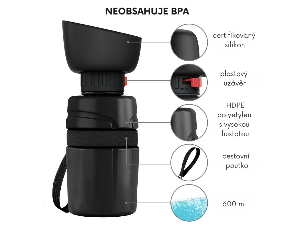 Lahev je navíc vybavena praktickým poutkem kolem obvodu, což znamená, že ji můžete snadno připnout na batoh, vodítko, nebo pásek. Pohodlně si ji vezmete kamkoliv a váš čtyřnohý chlupáč bude mít vždy dostatek pití.