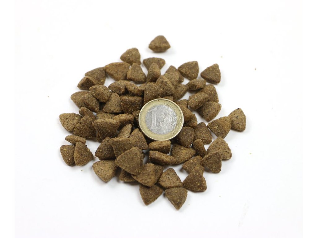 Hmotnost krmné dávky uvedená na obalu krmiva je orientační. Individuálně závisí na plemeni, věku, aktivitě, temperamentu, zátěži, genetických faktorech. Nepřekrmte svého psa v důsledku toho, že se necháte ovlivnit jeho chutí k jídlu a dychtivostí po granulích. Překrmení je nejčastější příčinou poruchy trávení. Denní krmnou dávku dospělým jedincům na porce dvě. Krmivo můžete zkrmovat suché nebo navlhčené, navlhčené nenechávejte v misce déle než půl hodiny. Pes musí mít dostatek pitné vody. Na krmivo přecházejte postupně. Přechodu na nové krmivo věnujte několik dní, kdy budete míchat nové se stávajícím.
