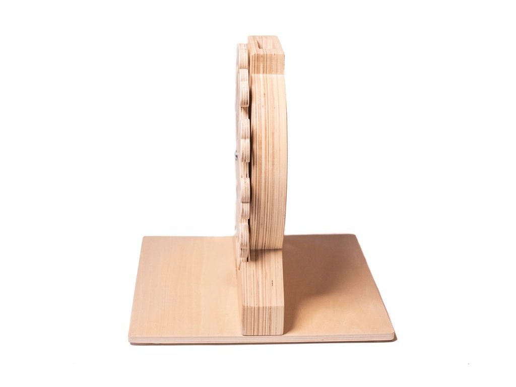 Hlavolam Hodiny je vyroben z certifikovaného dřeva opatřeného nátěrem na vodní bázi, který není škodlivý pro zvířata ani lidi. Udržujte hlavolam co nejvíce v suchu, abyste předešli naboptnání jednotlivých dřevěných částí.