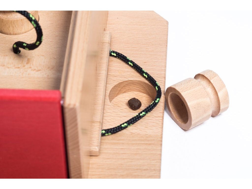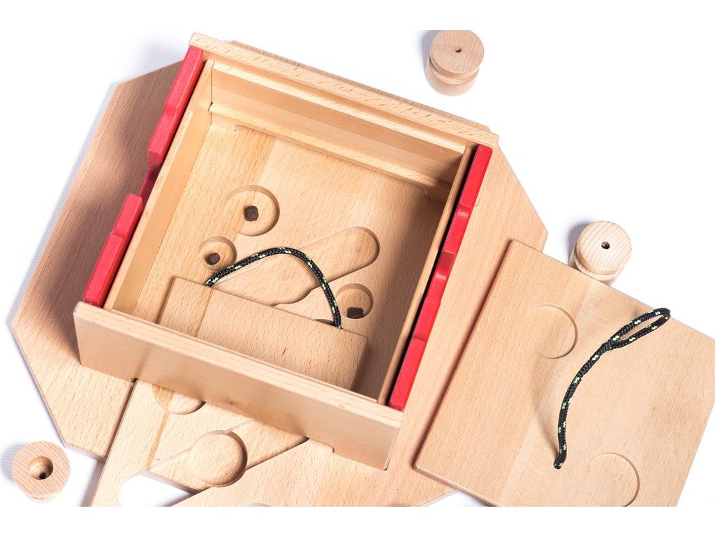 Hlavolam je vyroben z certifikovaného dřeva opatřeného nátěrem na vodní bázi, který není škodlivý pro zvířata ani lidi. Udržujte hlavolam co nejvíce v suchu, abyste předešli naboptnání jednotlivých dřevěných částí.