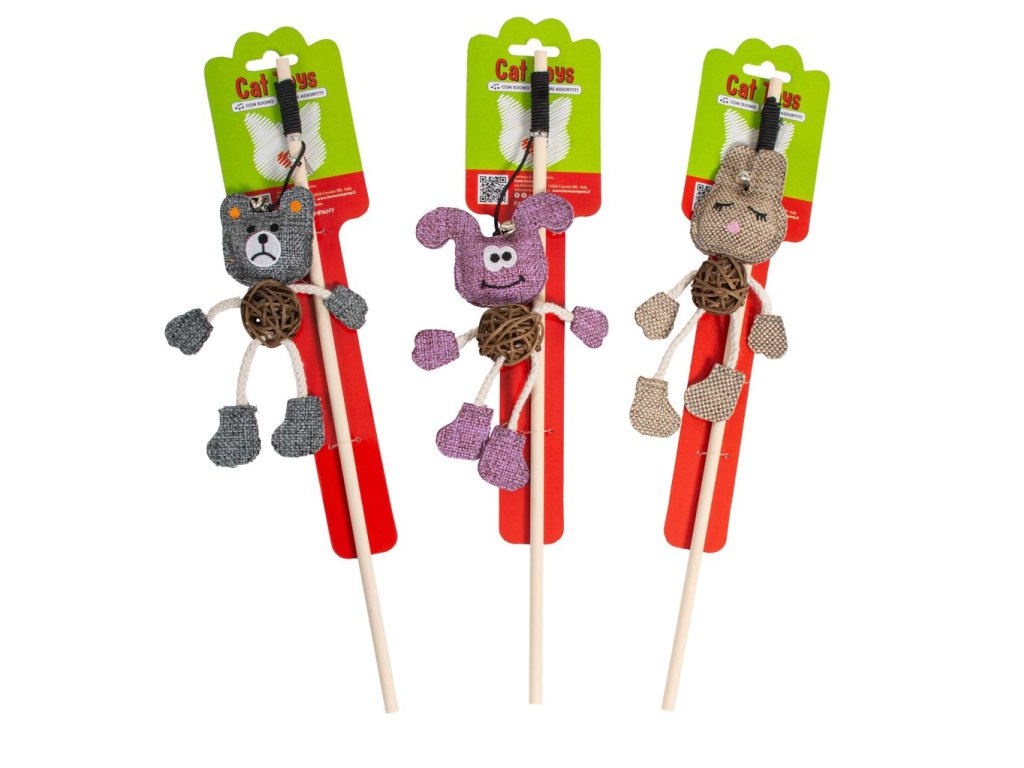 Plyšové zvířátko s rolničkou na udici přinese Vaší kočce spoustu zábavy – ve výskoku i při zemi.