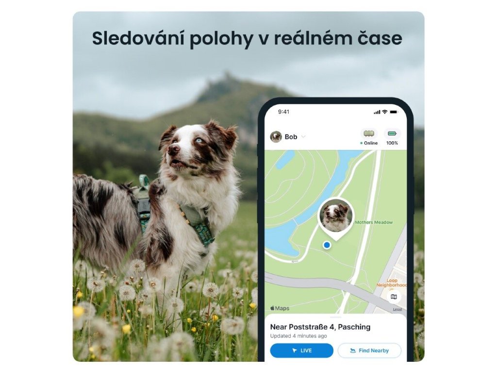- GPS obojek pro psy spolupracuje s bezplatnou aplikací pro Android a iPhone.