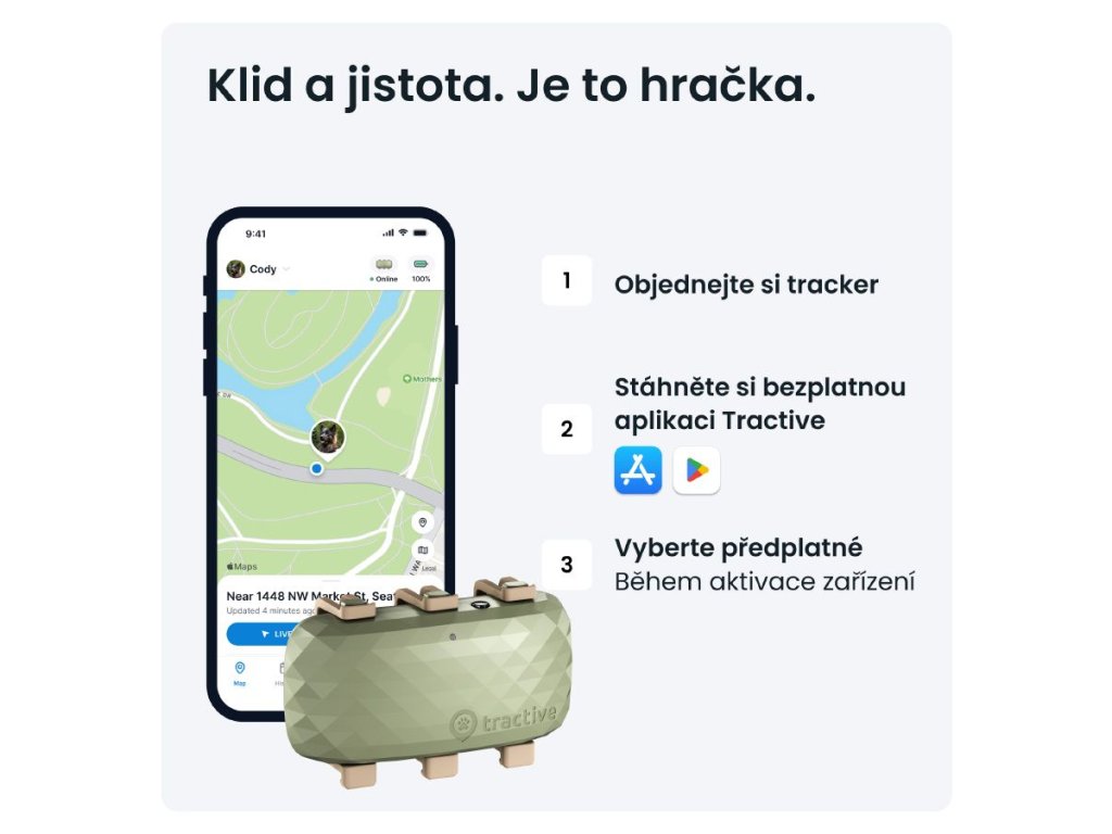 *Cena s předplatným na 2 roky a jednorázovou platbou předem. Ceny se mohou změnit. Nejnovější informace najdete na adrese tractive.com/plans.