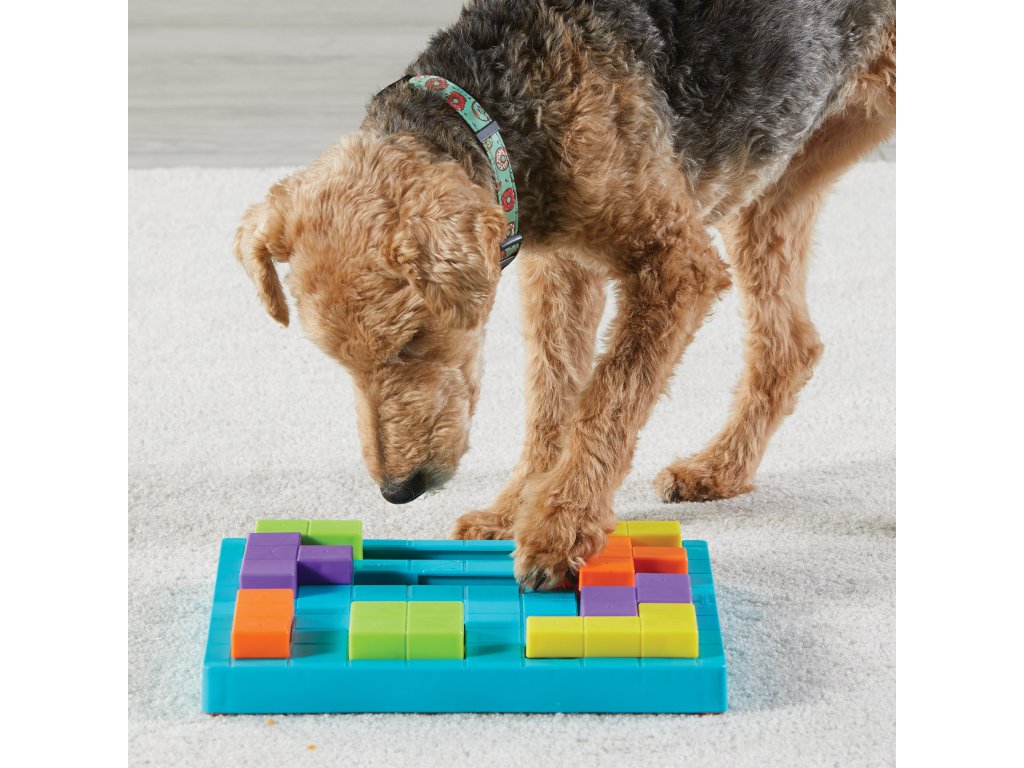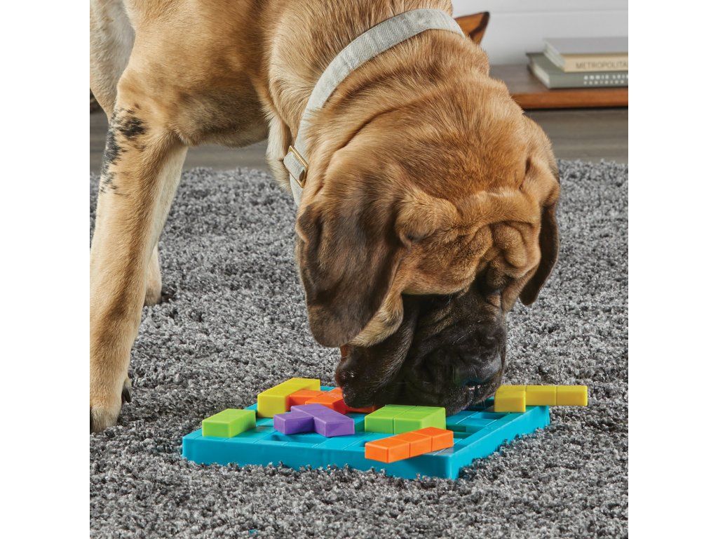 S tímto hlavolamem si domácí mazlíčci prošmejdí cestu k mentální stimulaci. Vhoďte pamlsky do 8 přihrádek a sledujte, jak váš psí detektiv pomocí tlapek a čenichu posouvá dílky puzzle, aby našel pamlsky ukryté uvnitř. Tento hlavolam, který byl vyvinut certifikovaným profesionálním trenérem psů a který zahání nudu, zvyšuje mentální stimulaci vašeho psa a může pomoci snížit pocity stresu a úzkosti. Zároveň slouží také jako slow feeder/zpomalovací miska a motivuje rychlé jedlíky, aby nespěchali a vyhnuli se žaludečním potížím.