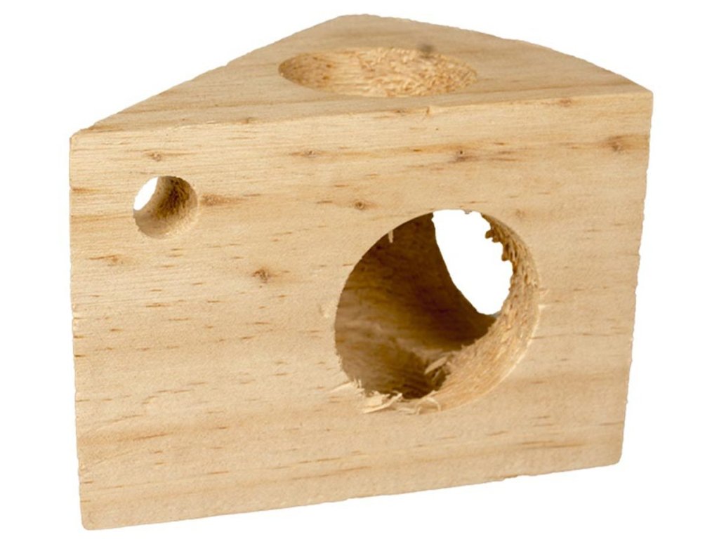 Dřevěná hračka ve tvaru sýra pro zábavu a hlodání