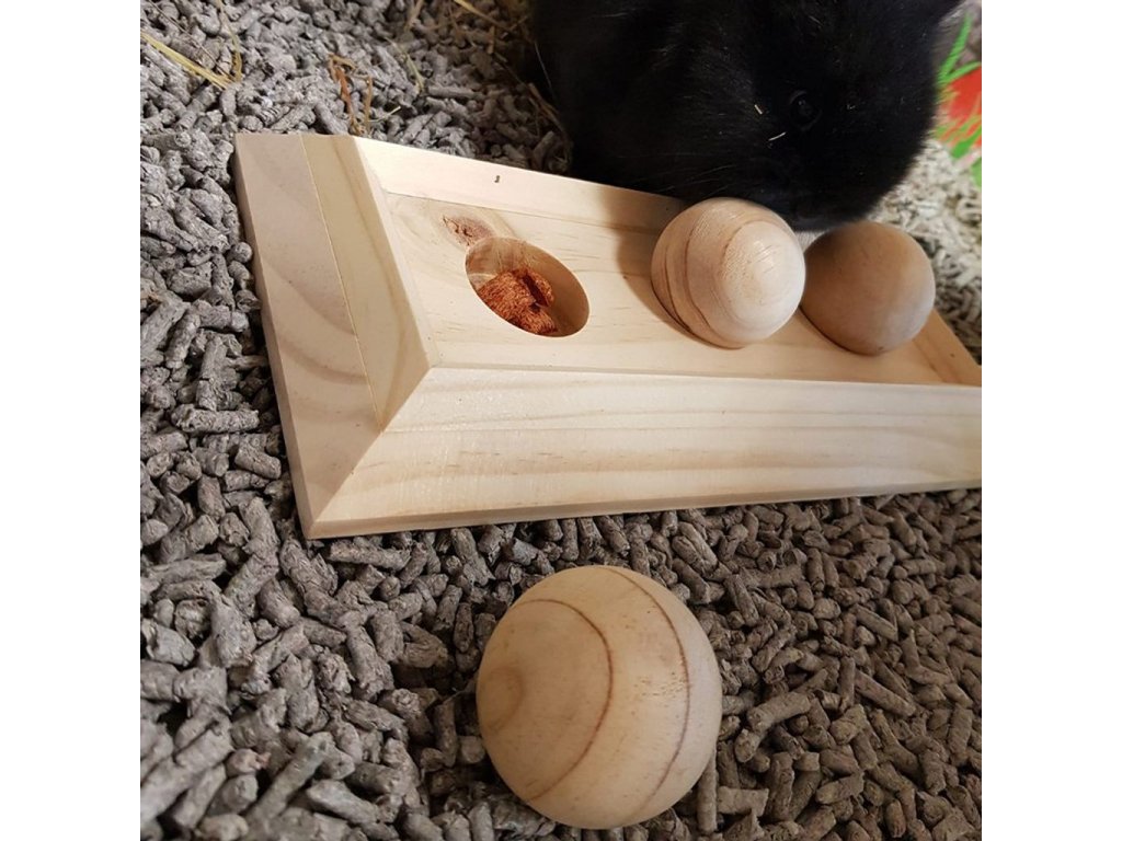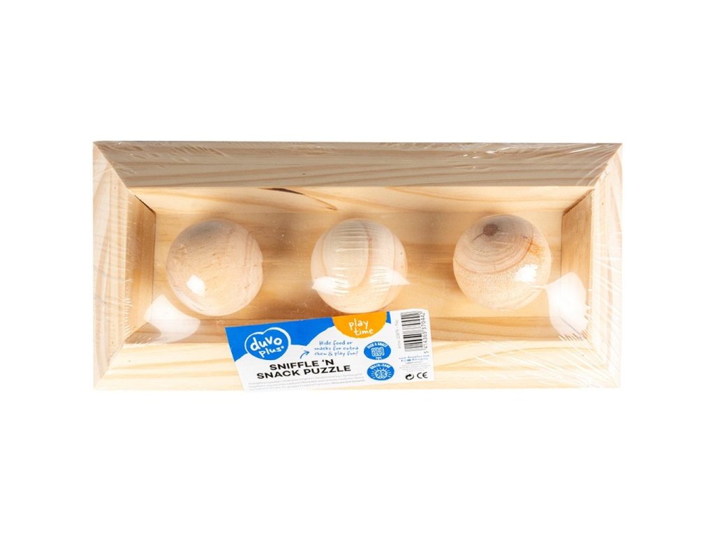 Interaktivní hračka s úkryty pod dřevěnými kuličkami DuvoPlus sniffle pomůže zabavit vašeho králíka nebo jiného drobného savce a udržet mozek i tělo aktivní. Schovejte pod kuličky kousky sušené potravy nebo pamlsky. Při hledání potravy zapojí zvířata svůj přirozený instinkt, což napomáhá jejich duševní pohodě. Samotná hračka pak může posloužit i jako vhodný materiál k okusu.