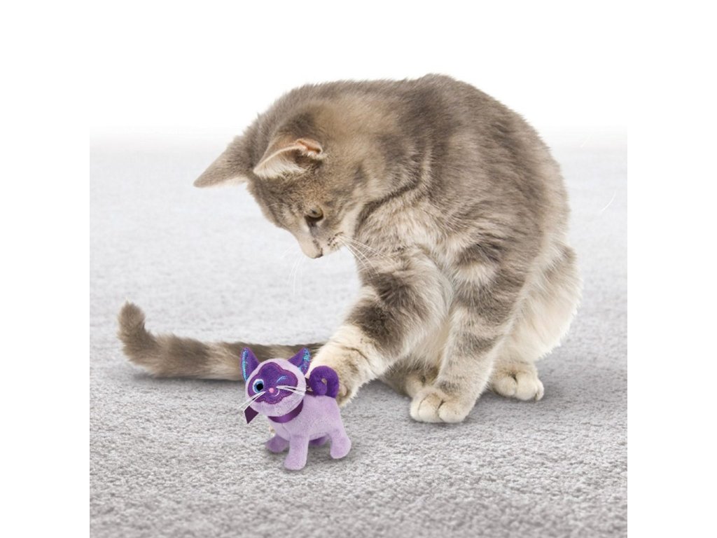 Pomrkávající plyšová kočka s dlouhými fousky a mašlí kolem krku má ouška ušitá z šustivého třpytivého materiálu a k tomu šustivou výplň břicha. Navíc je naplněná prémiovým catnipem (šantou kočičí), jehož vůně je pro více než polovinu koček vysoce přitažlivá. Uvidíte sami, jestli se s ní váš kočičí přítel bude raději prát, nebo mazlit.