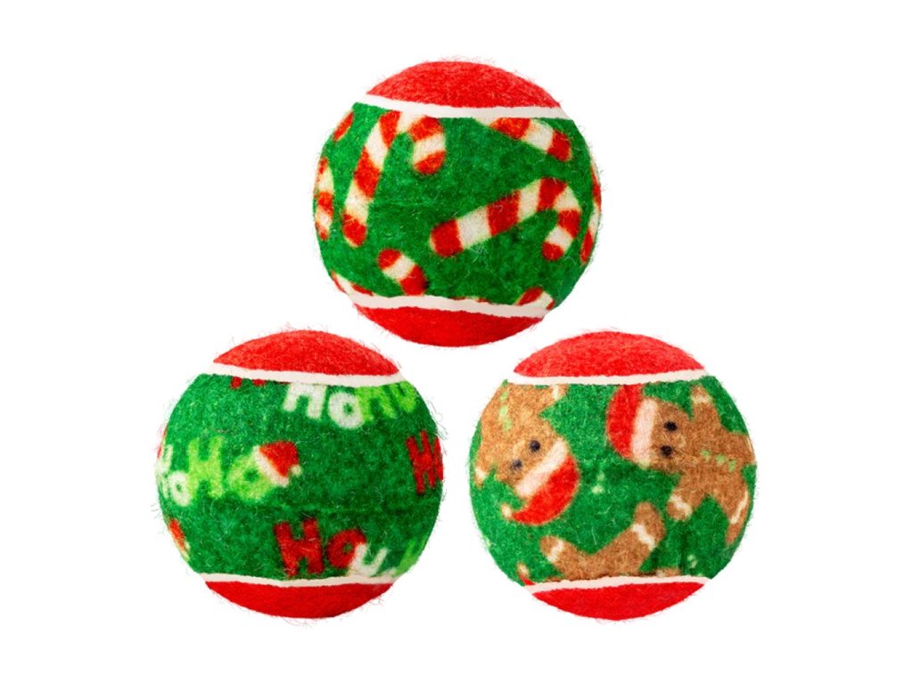 Každý míček je ozdoben veselými vánočními motivy. Uvnitř každého míčku je pískátko, které Vašemu psovi poskytne hodiny zábavy.