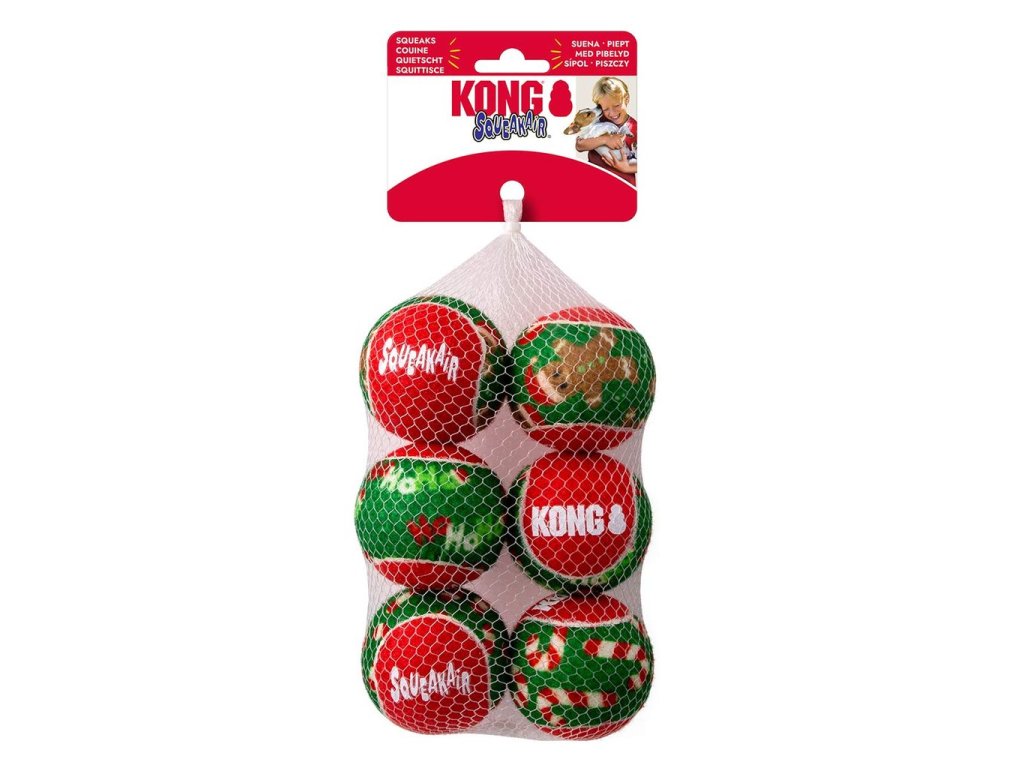 KONG SqueakAir Vánoční tenisové míčky 6,5cm 6ks
