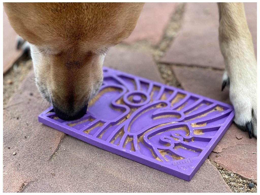Na začátku se ale zamyslete nad povahou Vašeho psa a podle toho jak je trpělivý mu vyberte složitost podložky. Psovi je celkem jedno jak podložka vypadá. Důležité pro něj je dostat veškerý obsah ven. Čím hlubší a členitější vzor je, tím složitěji se svačina dostává ven. Pokud se pes dostane do stresu začne podložku kousat a mlátit s ní. Proto je lepší do začátku zvolit jednodušší vzor. Sledujte jak si pejsek s dobrotou poradí. Pokud obsah vyluxuje hodně rychle, tak mu pro příště můžete pořídit podložku hlubší a členitější.