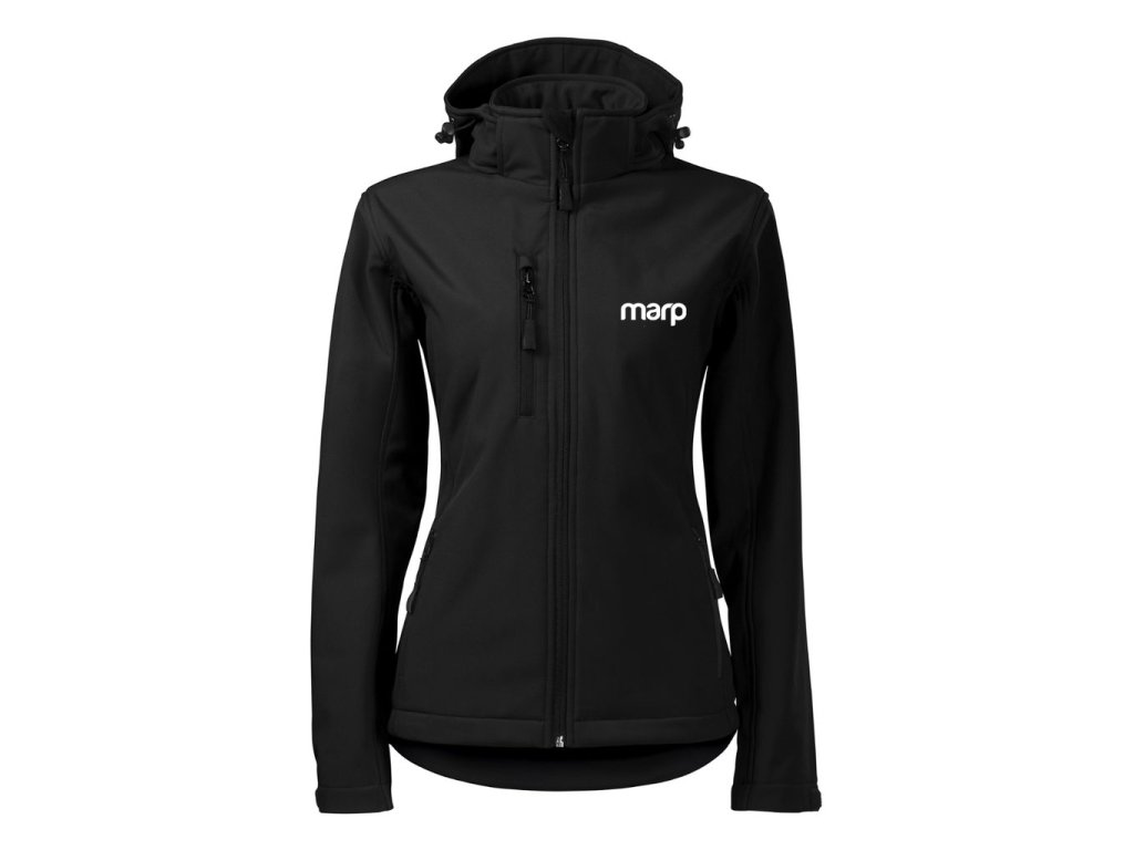 Kvalitní Marp dámská softshellová bunda s moderním střihem, který zvýrazní dámskou postavu. Bunda má odnímatelnou kapuci a možnost stažení dolního lemu elastickou šňůrkou. Spodní lem rukávů je nastavitelný suchým zipem. Bunda má dvě přední kapsy a 1 náprsní kapsu na zip. Díky své povrchové úpravě je bunda vodě odpudivá a větru vzdorná a je tak vhodná i do nepříznivého počasí.