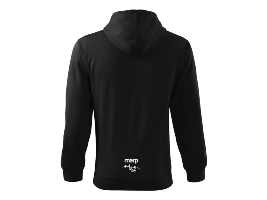 Mikina Marp je navržena pro maximální pohodlí i styl. Pánská mikina je rovného střihu s bočními švy, celo propínacím kostěným zipem a nakládanými kapsami ve stylu klokanky. Kapuce má stahovací šňůrku. Vnitřní část průkrčníku je začištěna kontrastní páskou, spodní lem a manžety rukávů jsou z žebrového úpletu 2:2 s 5 % elastanu