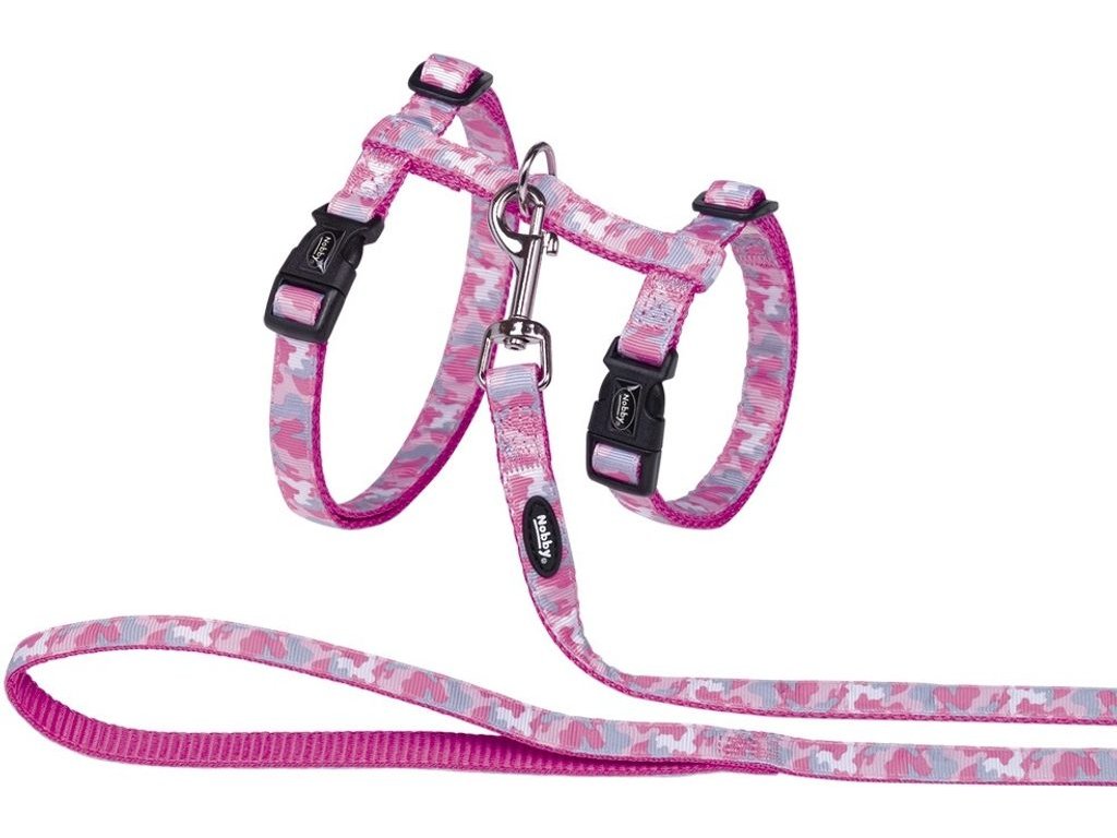 Nobby Camouflage postroj s vodítkem pro velké kočky růžový XL