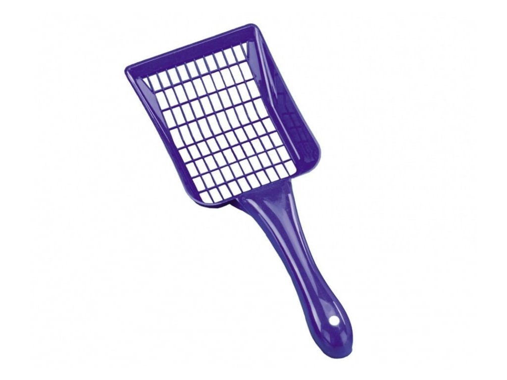 Neznečištěné stelivo propadává otvory lopatky zpět a může být znovu použito.