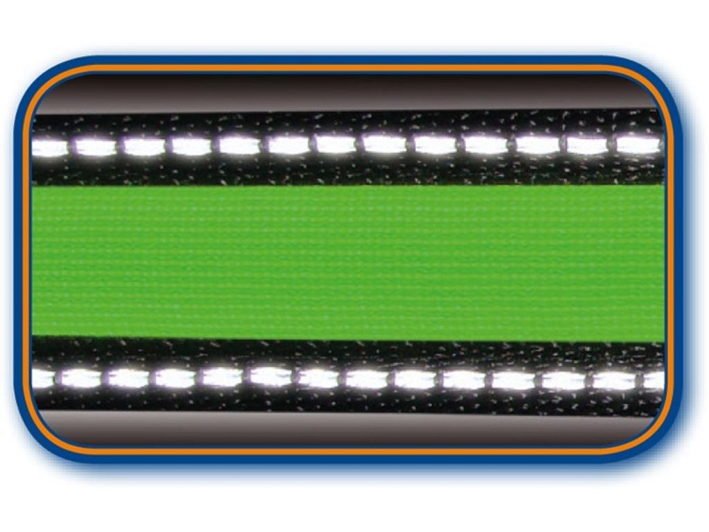 Pomocí kovového očka na jedné straně se snadno nacvakne na vodítka, na opačném konci je kovová karabina pro připnutí psa. Většinu délky prodloužení tvoří svítící pásek na nylonovém popruhu. Svítící část je ideální pro procházky po městě a u silnice, je silně svítící a nikdo Vás tak v šeru a tmě nepřehlédne. Prodloužení má tři různé typy svícení.