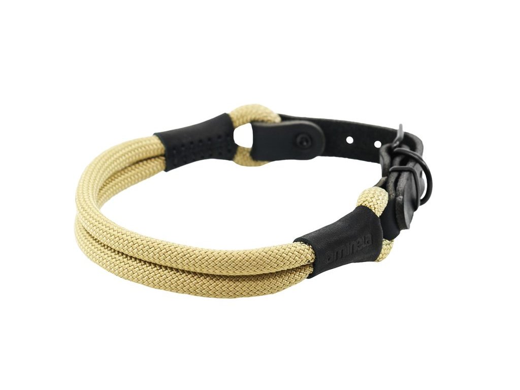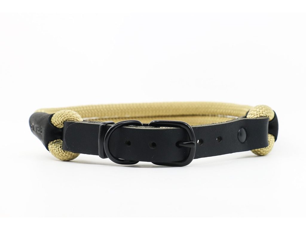 Obojek lano s kůží AMINELA, černé kování - Béžová