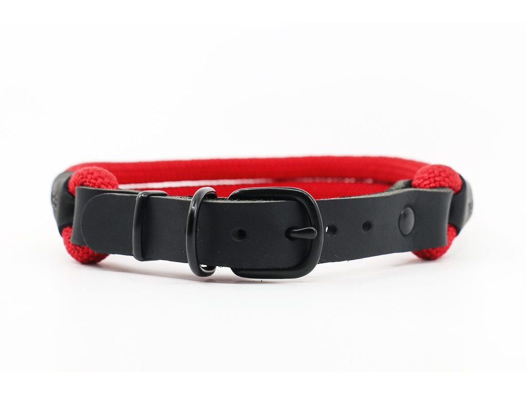 Obojek lano s kůží AMINELA, černé kování - Červená