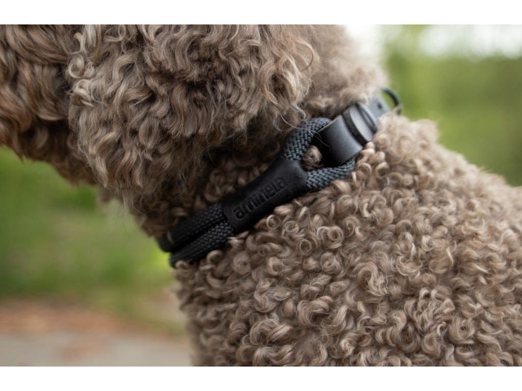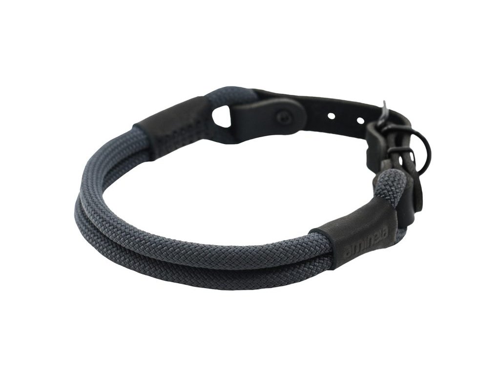 Obojek lano s kůží AMINELA, černé kování - Šedá