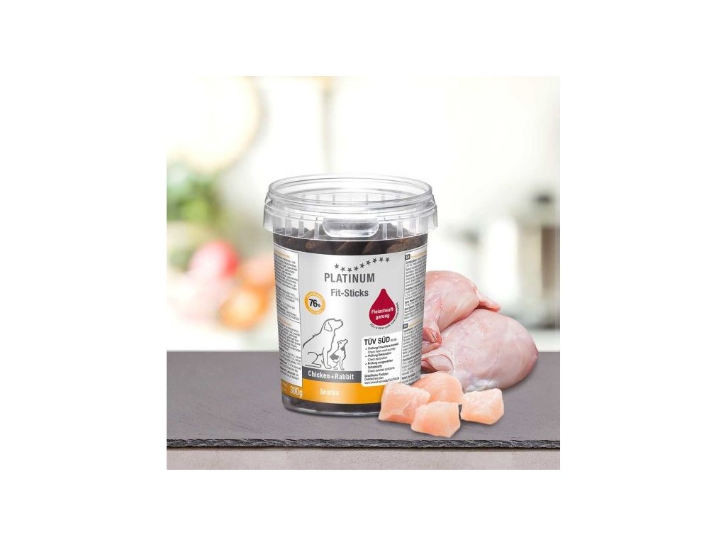 Zdraví ukryté v pamlscích. To jsou tyčinky Platinum s králičím a kuřecím čerstvým masem. Díky pomalému vaření ve vlastní šťávě a šetrnému sušení do tvaru tyčinek si zachovávají důležité živiny i plno vitamínů. A taky neodolatelnou chuť.