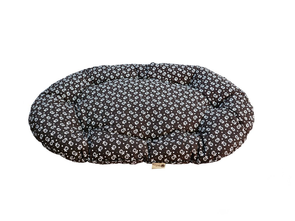 Ručně šitý oválný polštář pro psy.