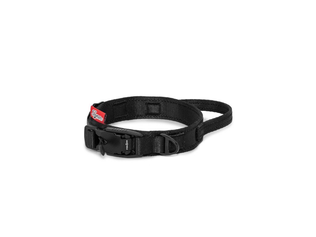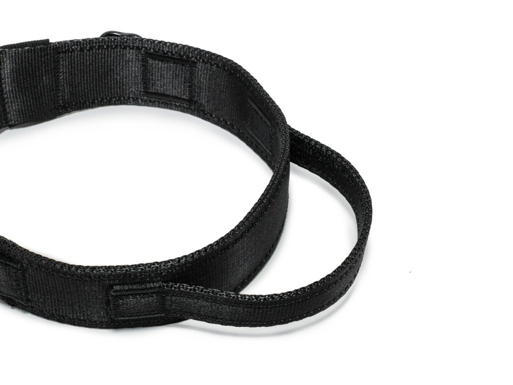 strategicky umístěné madlo pro okamžitou kontrolu nad psem; neocenitelné při přecházení silnice, v blízkosti cyklistů nebo při setkání s jinými psy; ergonomicky tvarované pro pohodlný úchop i v náročných situacích; diskrétně zapracované do designu obojku, takže nepřekáží při běžném používání