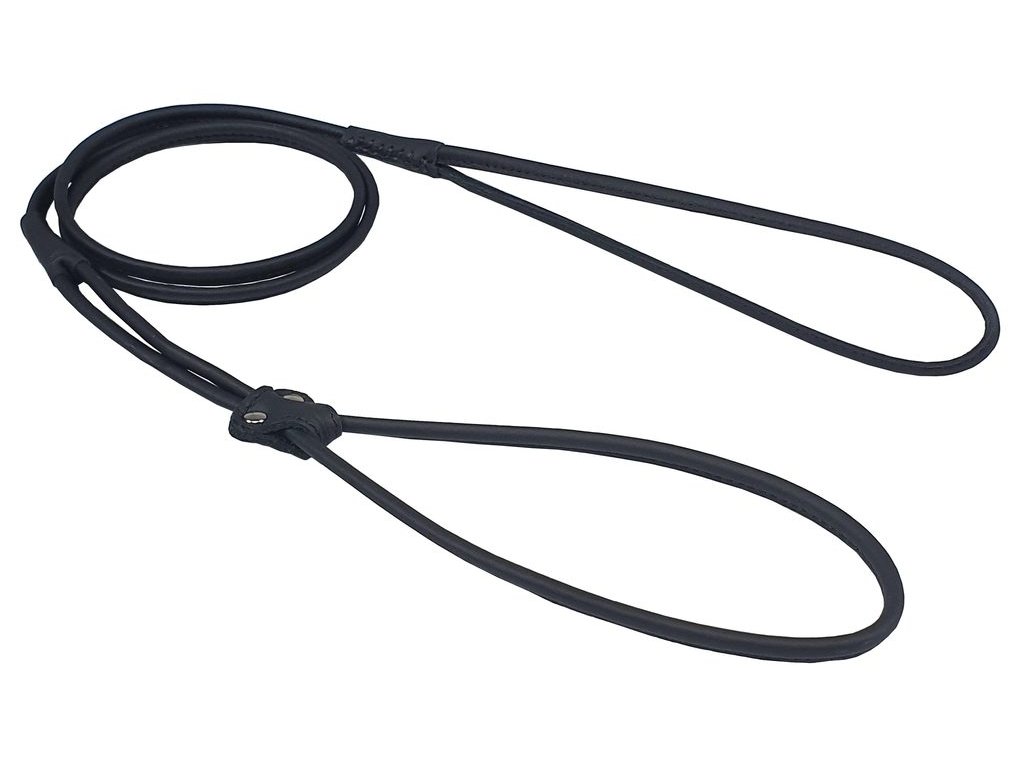 Předváděcí vodítko z šité kulaté kůže - Černá