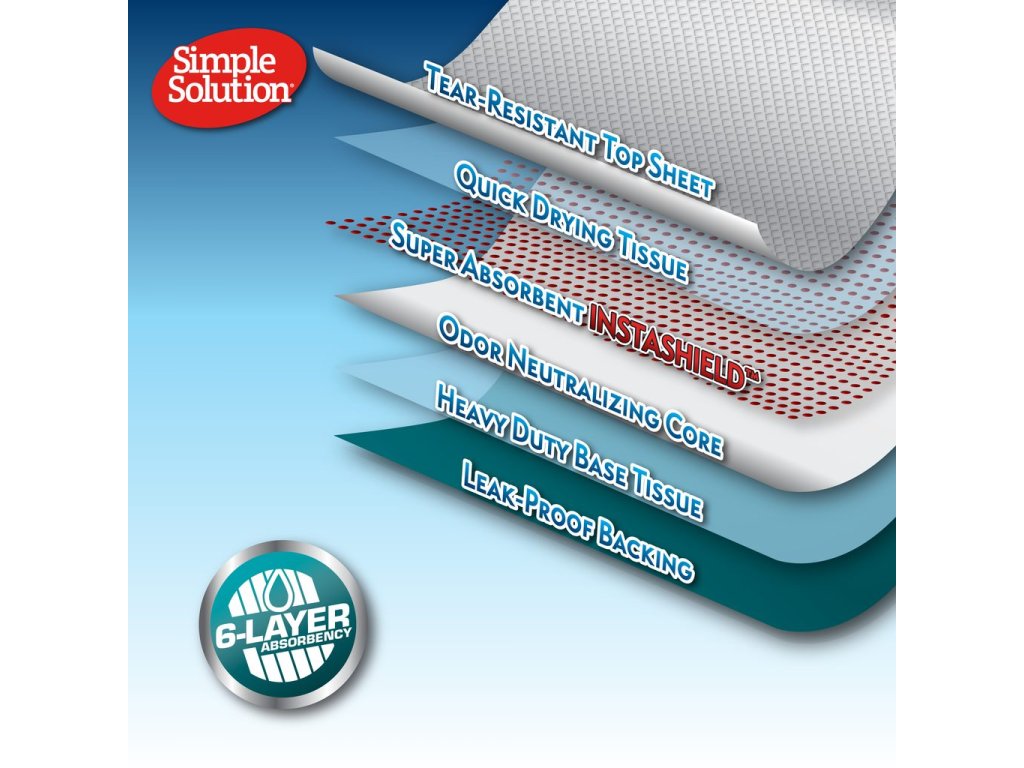 - Spolehlivá ochrana podlahy: 6 vrstev s technologií InstaShield zaručuje maximální savost a nepropustnost – pojme až 6 plných šálků tekutiny (cca 1,4 litru).