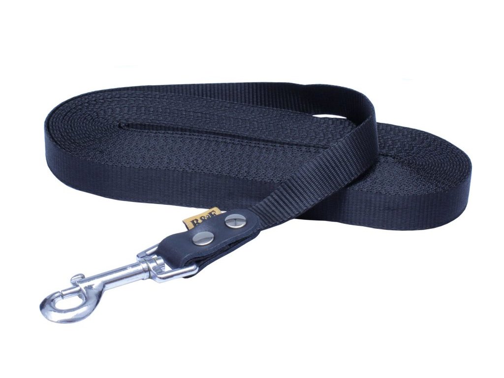 Stopovací šňůry jsou vyrobeny z pevného popruhu. Karabina je připevněna kůží a nýty. Šňůry můžete použít buď k výcviku - obrana, poslušnost či k venčení, pokud se bojíte svého mazlíčka pustit, umožníte mu trochu volnosti!