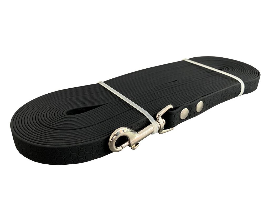 Stopovací vodítka polytrace jsou vyrobena z popruhu se speciální povrchovou úpravou, který je odolný vůči vodě a přitom je velmi měkký a příjemný do ruky. Spoje jsou nýtované. Vodítka jsou vhodná pro střední a velká plemena.