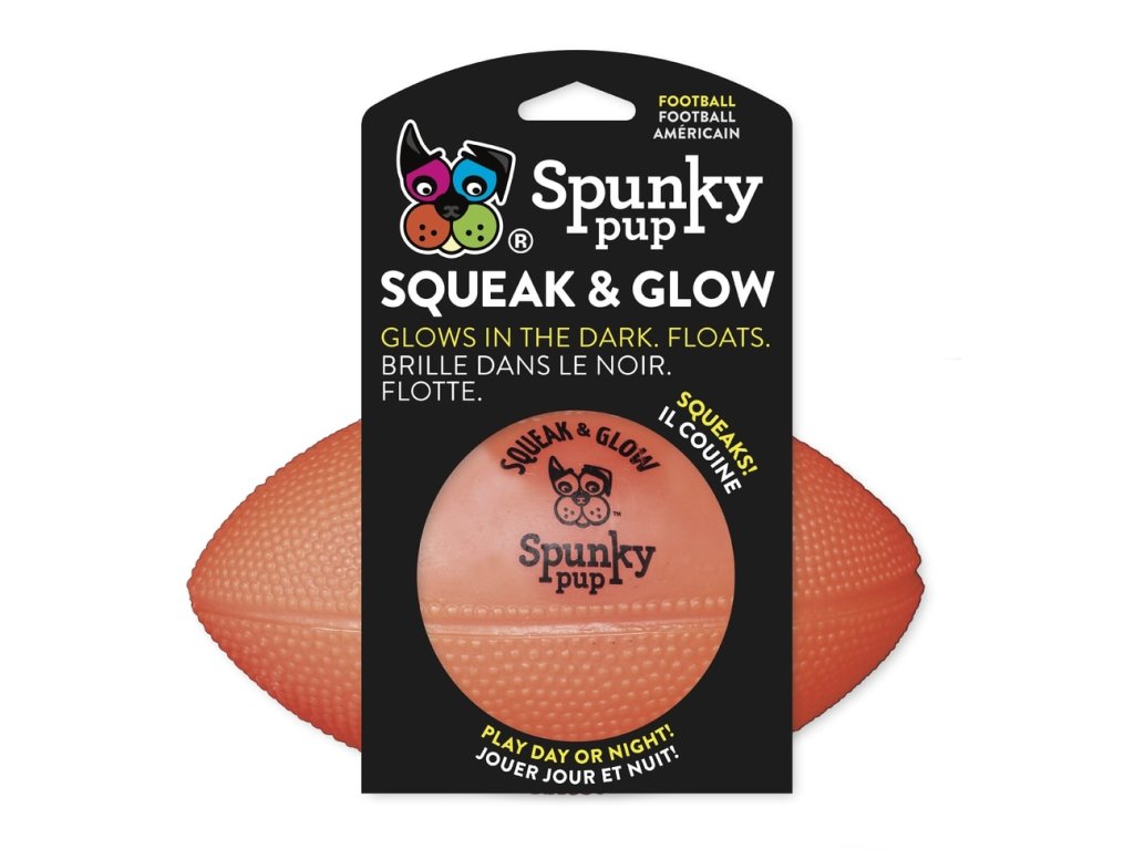 S míčem Spunky Pup ve tvaru amerického fotbalu získá každá hra šťávu – i po setmění!