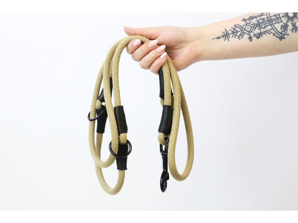 Vodítko lano s kůží, přepínací AMINELA, černé kování - Béžová