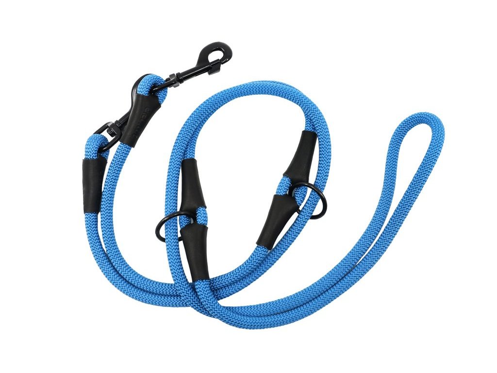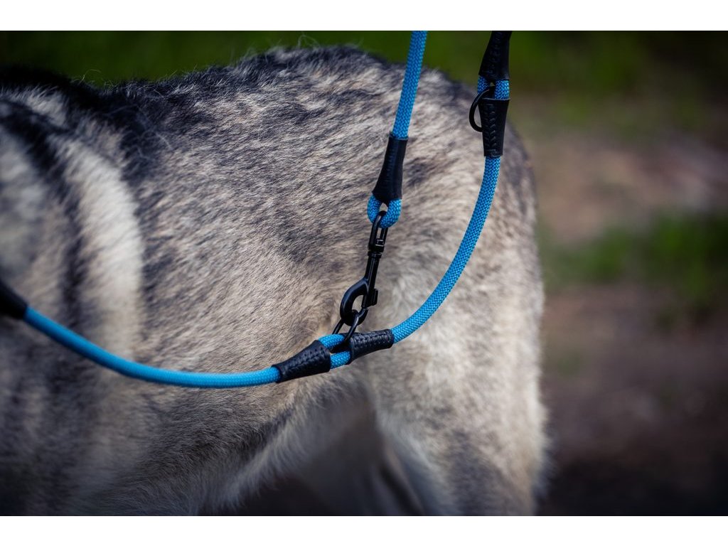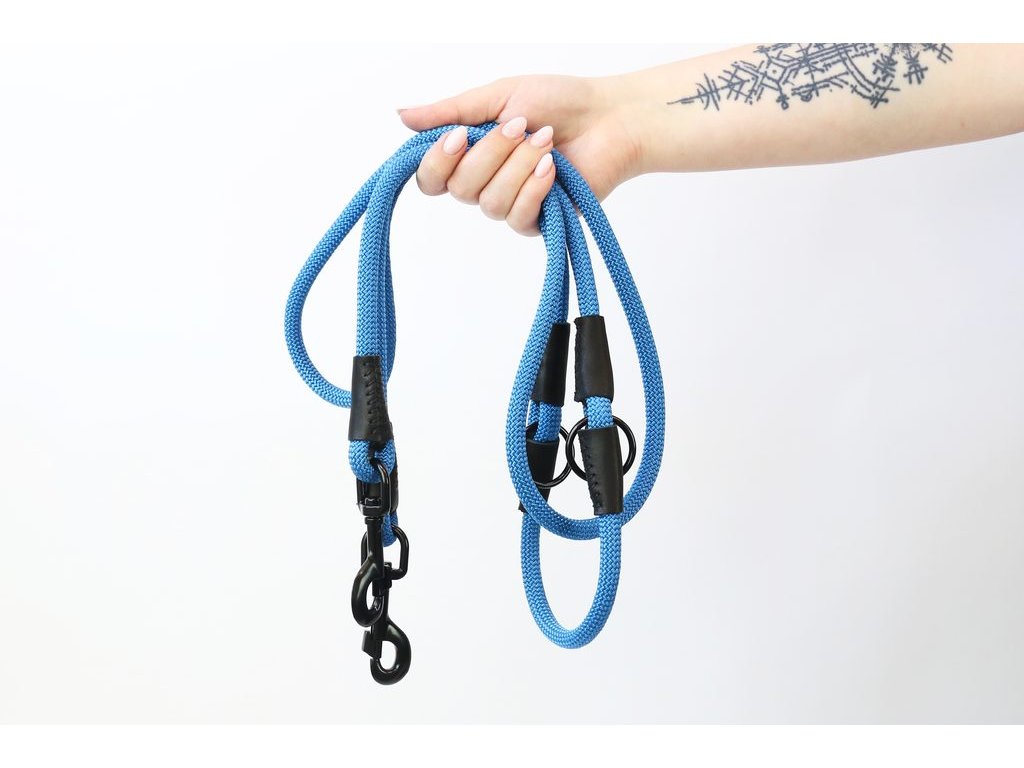 Vodítko lano s kůží, přepínací AMINELA, černé kování - Modrá