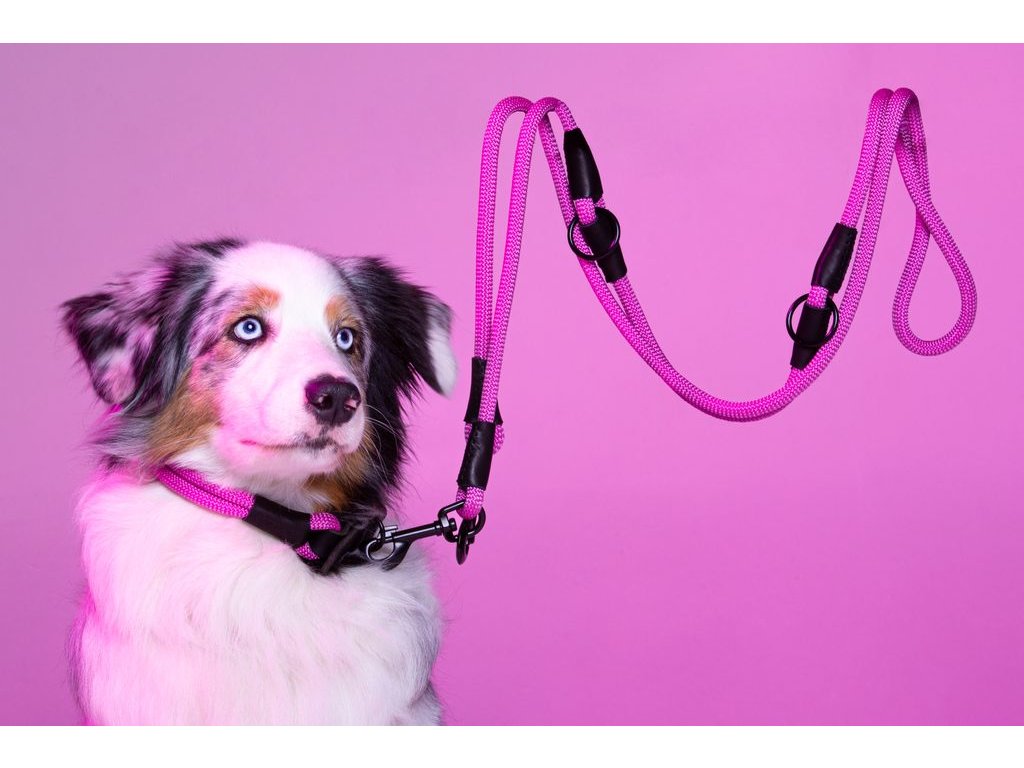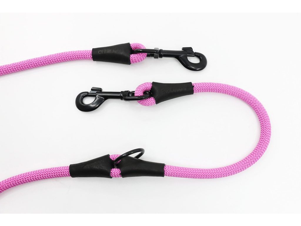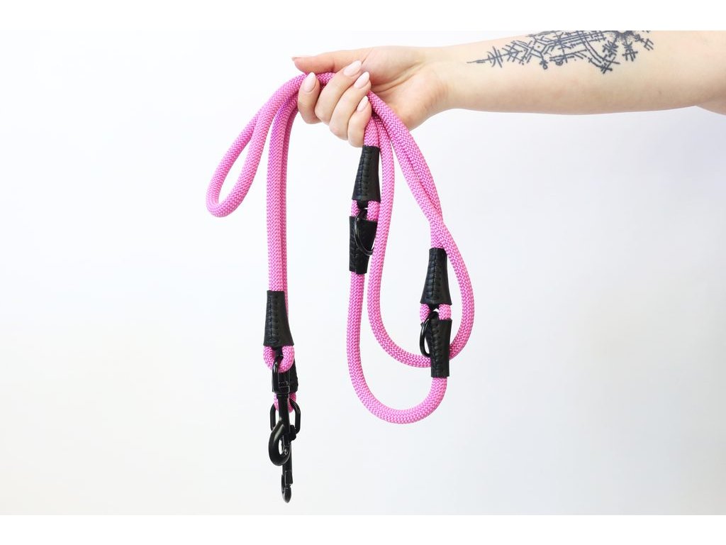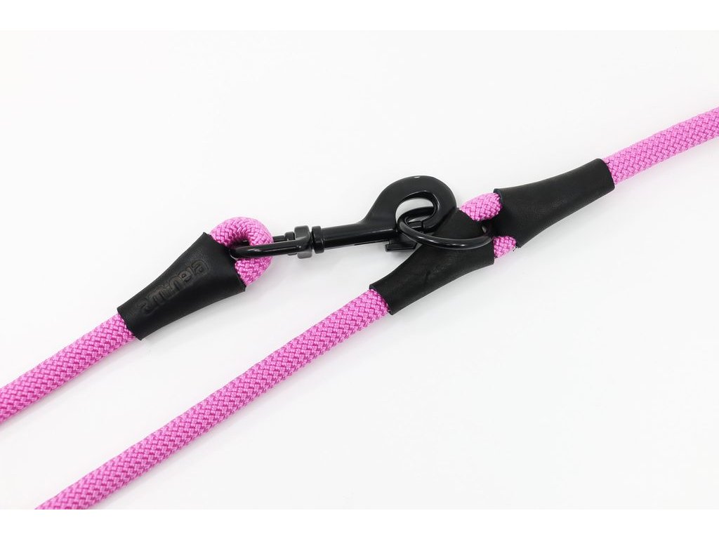 Vodítko lano s kůží, přepínací AMINELA, černé kování - Růžová