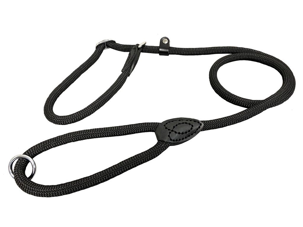 Vodítko předváděcí JEDNOBAREVNÉ lano, šité kůží - Černá